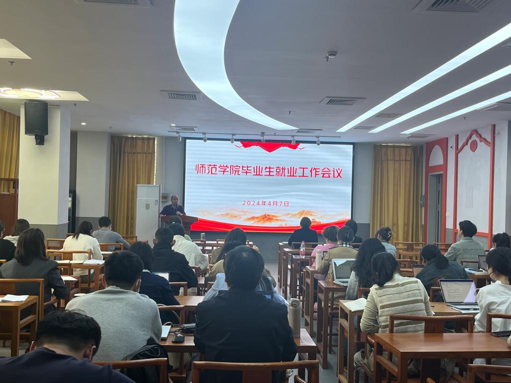 4月7日下午,师范学院于吕振万308召开毕业生就业工作会议,院党委书记田建和、院长赵红霞、副书记张鸿、副院长谢书书及全体教职工参加会议。